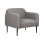 Elevate your space with this elegant armchair – a fusion of timeless comfort and modern design. Immerse yourself in the embrace of luxurious linen upholstery and thick seating, that offer extra comfort. The sleek metal legs provide a touch of industrial charm, seamlessly blending minimalism with a hint of retro allure. This armchair makes for a true statement piece – an invitation to unwind in style. Details: Color: Grey, Black. Main material: Linen. Additional material: Polyester, Eucalyptus Wood, Iron. Material Composition: 70% Linen, 30% Polyester Weight: 20 Assembly: Full Assembly Required Wood type: Eucalyptus grandis Wood Origin: China Weight Capacity: 150 Padding Thickness: 20 Seat Height: 43