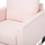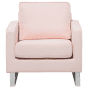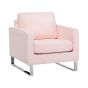 This low back armchair is a complimentary addition for a modern nursery, bedroom or home library. Boasting wide and deep seat with thickly filled cushions in a pink fabric finish, it offers a stylish look and high seating comfort. Designed with a chromed steel base for a clean look that works well with a minimalistic layout, as well as eclectic décor styles. Details: Color: Pink, Silver. Main material: Polyester. Additional material: Stainless Steel. Material Composition: 100% Polyester Weight: 23 Assembly: Partial Assembly Required Weight Capacity: 200 Padding Thickness: 11 Seat Height: 44