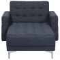 This modernised chaise lounge provides comfortable seating as a daybed with its reclining backrest. Fully upholstered in high-quality, stylish dark grey fabric and elegant tufting, it seamlessly blends with any interior colour scheme. Its modular design allows for it to be combined with other pieces from the collection to create the seating arrangement of your dreams. The whole piece is kept stable thanks to metal legs. Details: Color: Grey, Silver. Main material: Polyester. Additional material: Wood, Metal. Material Composition: 100% Polyester Weight: 39 Assembly: Full Assembly Required Weight Capacity: 180 Legs Height: 13 Padding Thickness: 20 Seat Height: 41