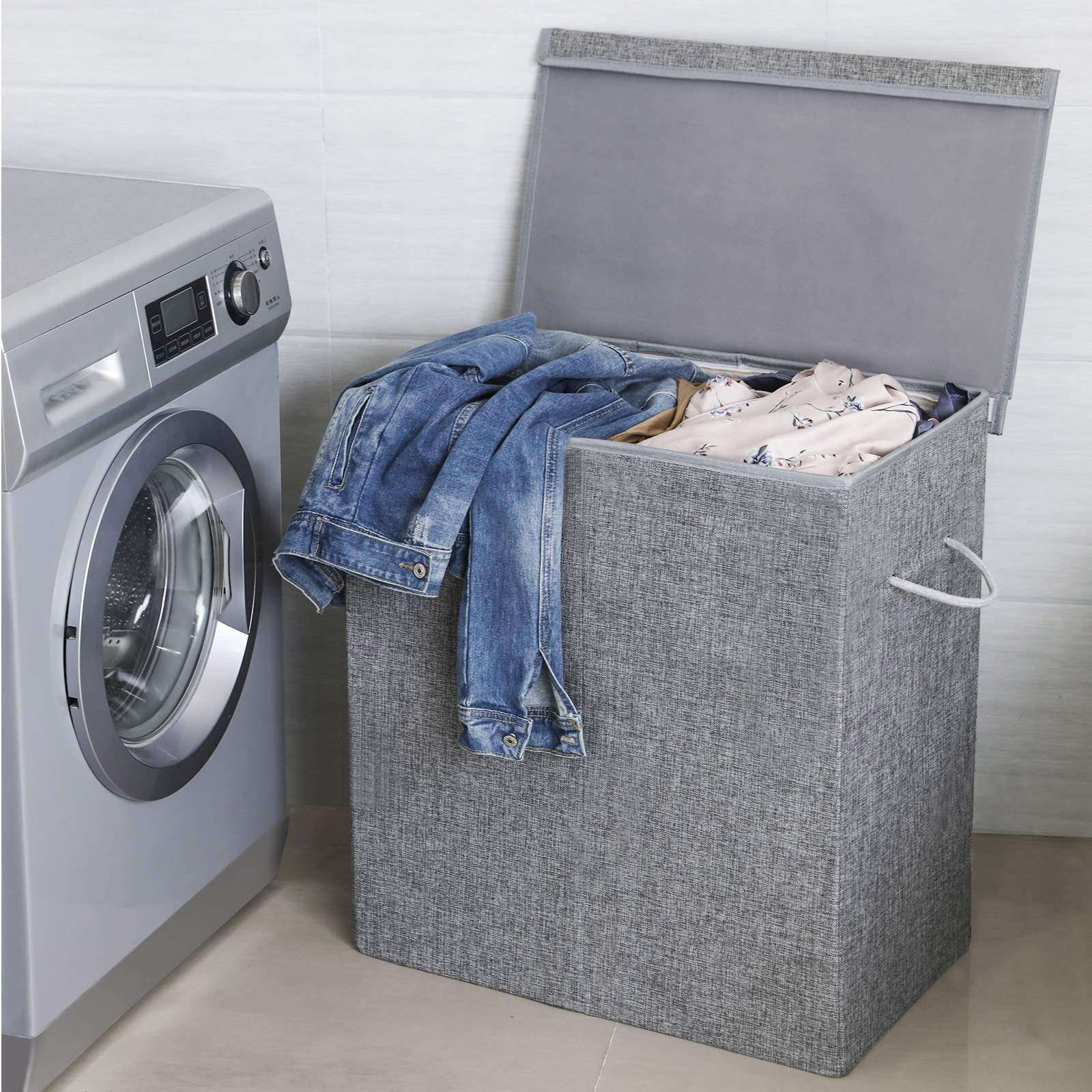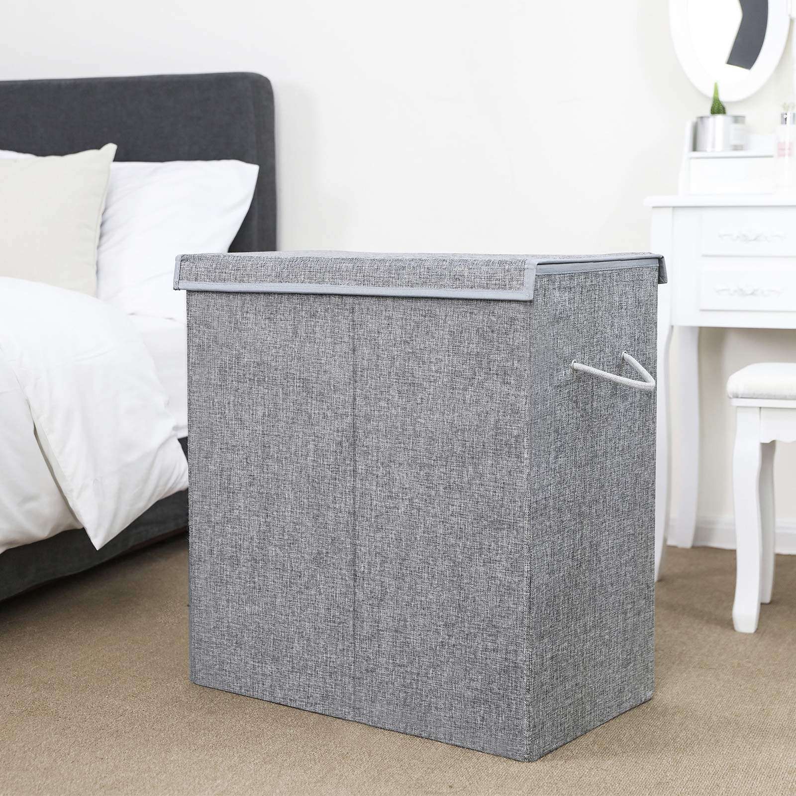 Descriptions:Make Your Laundry Day Easier: Have to collect your dirty clothes scattered everywhere in your home when it's laundry day every week? Always start your washer only to find another shirt a minute later in the closet that needs to be added to the washer too?If this rings a bell, then you should have a laundry hamper!Skin-Friendly Linenette Fabric: This laundry basket in elegant grey is made of breathable linenette fabric, which ensures ventilation in the hamper and also matches any home decor.Invite this laundry hamper with side handles to your home as your assistant today!