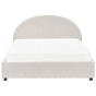 Curved shapes and rich texture fabrics are the features of furniture perfect for retro theme decor in your bedroom. No other bed will fit that interior style more than this bed in light beige colour. The upholstery is not only pleasant to touch, it is also easy-care and durable and thanks to it, the bed will last for many years. With its rounded headboard, it will add an inviting feel to a bedroom. The bed comes with an ottoman storage, which will allow you to keep your extra cushions and bedding close at hand. Details: Color: Beige. Main material: Polyester. Additional material: Eucalyptus Wood, Plywood. Material Composition: 100% Polyester Weight: 69 Assembly: Full Assembly Required Wood type: Eucalyptus grandis Wood Origin: China Weight Capacity: 350 Legs Height: 5 Sleeping Surface: 160x200