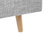 This high-quality bed gives you a comfortable feel and guarantees sound sleep. It is covered with linen fabric in a subtle light grey colour which goes well with the wooden, stable legs. The chic shape will add a touch of style to your interior. The buttoned headboard and footboard complete its magnificent design. It is a perfect bed for those who value functionality, modern design, precision and quality. Details: Color: Grey, Light Wood. Main material: Polyester. Additional material: Wood, Polyester. Material Composition: 85% Polyester, 15% Viscose Weight: 50 Assembly: Full Assembly Required Wood type: Populus Wood Origin: China Weight Capacity: 300 Legs Height: 22 Sleeping Surface: 180x200