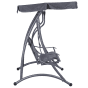 A non-traditional garden swing that will fit in perfectly in a modern garden or patio. The sturdy powder-coated steel frame ensures its longevity whilst its gently rounded shape blends naturally into outdoor scenery. With ample room for two people, this swing offers a gentle motion for perfect relaxation at the end of a long day. The synthetic fabric is low-maintenance, and the handy adjustable canopy allows you to quickly switch between sun and shade for added convenience and versatility. Details: Color: Grey. Main material: Polyester. Additional material: Polyester, PVC. Weight: 40 Capacity: 2 People Assembly: Full Assembly Required Weight Capacity: 200 Seat Height: 50