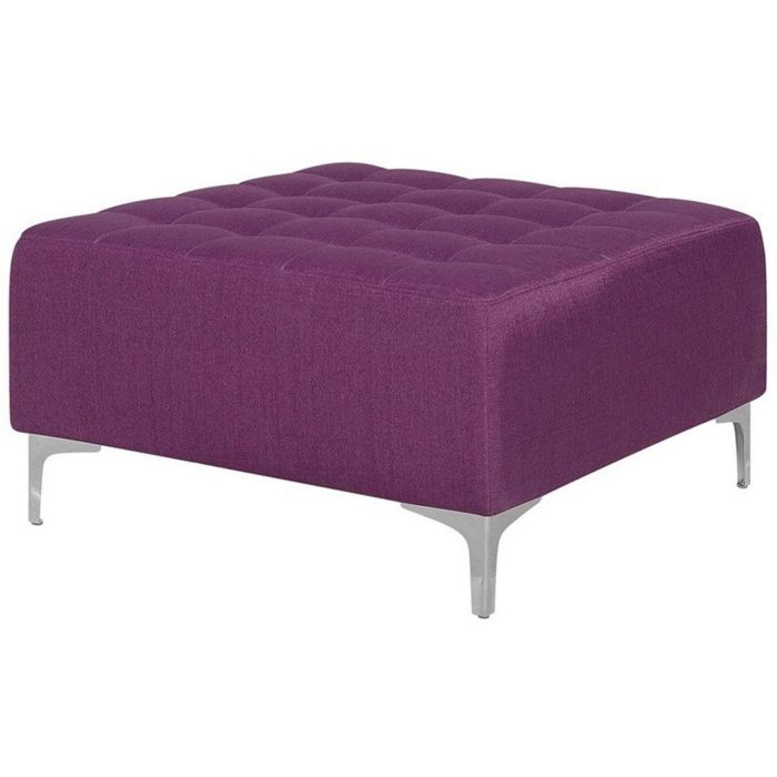 This modern footstool is the perfect addition to a sofa set. Fully upholstered in high-quality violet fabric and elegant tufting, it suits any interior colour scheme. Combine it with other pieces from the collection to create a seating arrangement tailored to suit you. The whole piece is kept stable thanks to metal legs. Details: Color: Violet, Silver. Main material: Polyester. Additional material: Metal. Material Composition: 100% Polyester Weight: 15 Assembly: Legs to be Fitted Wood Origin: China Weight Capacity: 150 Legs Height: 13