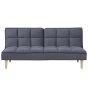 Simple, clean style combined with functionality, this 3-seater sofa offers a comfortable place to sit and sleep. It is easily convertible into a double bed and with the reclining, split backrest feature you can fully adjust it to your needs. Featuring dark grey, square quilted upholstery and paired with wooden legs the sofa brings a touch of retro forms to any modern living area. Details: Color: Grey, Light Wood. Main material: Polyester. Additional material: Eucalyptus Wood. Material Composition: 100% Polyester Weight: 36 Capacity: 3 People Assembly: Legs to be Fitted Wood type: Eucalyptus deglupta Wood Origin: China Legs Height: 20 Padding Thickness: 17 Seat Height: 37 Sleeping Surface: 177x105