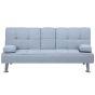 The ultimate sofa in a space-saving design, this is the ideal furniture for any modern guest room or living area. Constructed with a functional drop-down table with a place for two cups and removable arm pads. The sofa offers utter comfort, whether you want to use its recliner feature or quickly transform it into a bed. The quilted fabric upholstery matches with the metal legs, giving a trendy look that blends well with any home décor. The additional cushions feature a removable cover that translates to easy cleaning without a worry for stains. Details: Color: Grey, Silver. Main material: Polyester. Additional material: Stainless Steel, Eucalyptus Wood. Material Composition: 100% Polyester Weight: 32 Capacity: 3 People Assembly: Legs to be Fitted Cushions Dimensions: 43x22x7 Legs Height: 18 Padding Thickness: 18 Seat Height: 36 Sleeping Surface: 168x100