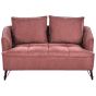 This sofa set, featuring a 2-seater and a 3-seater, effortlessly blends style and comfort. The durable, soft-to-the-touch upholstery fabric and thickly padded seats ensure a cosy and inviting experience. Supported by sleek black metal legs, the set enhances the overall look with its chic and contemporary appeal. It's perfect for retro-inspired interiors, adding an elegant touch to any living space.