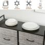 Are you looking for a chest of drawers to keep your bedroom tidy? This chest of drawers with hanging rail is a good choice for you. Made from sturdy steel tube and premium density board, the chest of drawers is stable and has a large weight capacity. The four feet can be independently adjusted making it possible to level the chest of drawers on any floor or carpet. This chest of drawers can also be used without the hanging rail, meaning it could be used in any room of the home to meet your different needs. By following detailed instructions, the chest of drawers can be assembled quickly. If you are looking for a storage organizer like this, do not hesitate to place an order! Dresser with 5 Fabric Drawers: With 2 kinds of different fabric drawers, you can store underwear, blankets, socks, toys and other things in dresser. It not only makes your room tidy but also you can take things conveniently. And every removable drawer features ergonomic handle for easy opening and closing. Solid Clothes Hanging Rod: Comes with a 94 cm hanging rail it is convenient for you to prepare your next-day outfit and don’t have to dig around the closet to find right match. Both ends of rod have raised area for hanging your accessories like bags and hats. Study and Durable Materials: The frame of this storage organizer is made of heavy duty metal and the top board is made of durable density board. You can place vase, photo frame on the top to be great decors. In addition, the front and bottom board of drawer is made of premium density board which ensures long usage. Multifunctional Storage Organizer: The storage organizer is designed in compact appearance and can be placed in the corner in your bedroom or living room for household essential without taking too much space. What’s more, the organizer can be used without cloth hanging rod to meet your different needs. Easy to Assemble and Use: It is convenient to install the storage organizer with installation manual and required accessories. And you can assemble it by yourself in short time. With four feet at the bottom, their height can be changed slightly to apply for uneven surface.