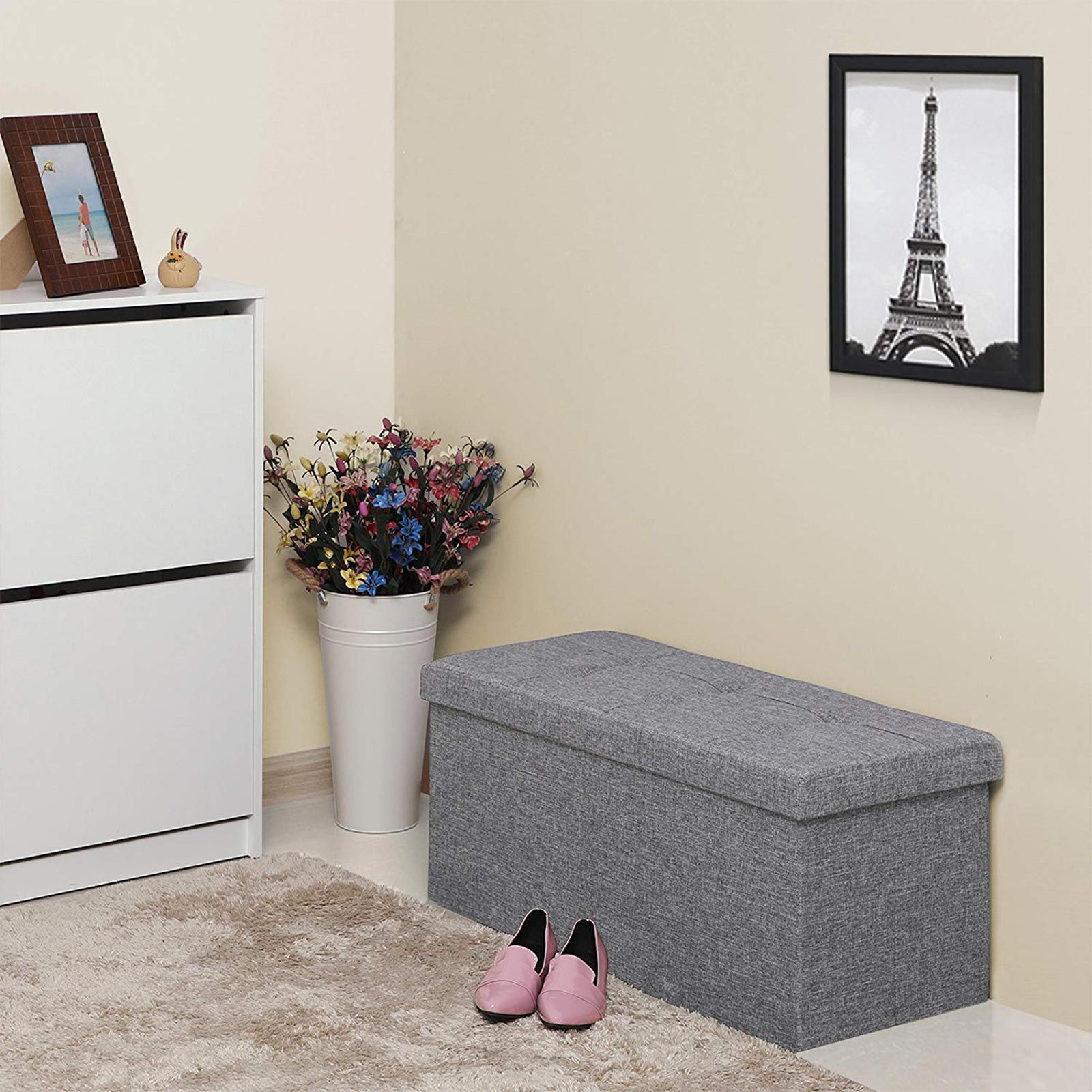 Descriptions: This storage ottoman bench box is finely crafted with superior linenette & quality MDF boards. After-set-up structure is sturdy & solid, decorative appearance matches your interior decor & furniture. Popular for use as: Storage Bench Sundries finally have somewhere to go; no matter blankets, duvets, clothes, or remotes, books... an easy solution to organize your working and living environment. Hallway Shoe Bench It is sturdy as a bench to be placed at the entrance or closet. You may sit on it to take off your shoes and store them away out of sight. Foot Rest Tired after a long days' work? You'll love kicking your feet up on the comfy cushion and relaxing in style. Coffee Table Top with a tray, it becomes an instant coffee table or end table to keep drinks or food. Puppy Step Puppies may use it to step onto your bed or look out of the window.