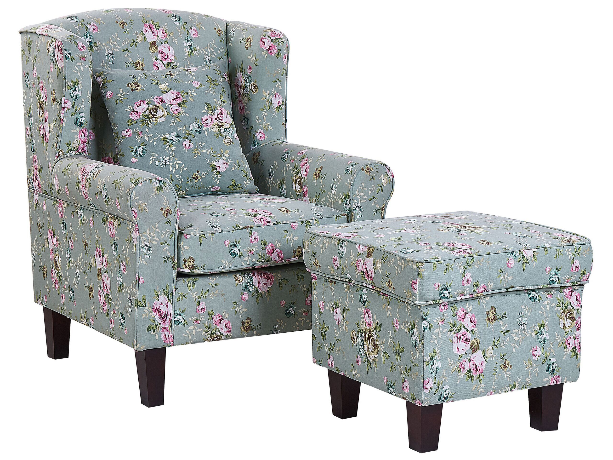 Fabric Wingback Chair with Footstool Floral Pattern Green HAMAR