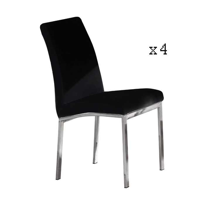 Fairfield Elegance Set of 4 Leather Effect Dining Chairs with Chrome Legs - Black