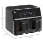 Family Air Fryer , 8L Double Air Fryer Oven w/ 8 Presets, Digital Display, Recipe Cookbook, 60min Timer for Oil Free & Low Fat, 2500W, Black