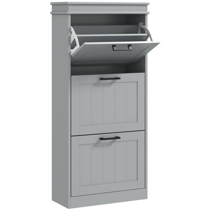 FARNWELL Tallboy Large Shoe Cabinet with 3 Flip Drawers - Grey