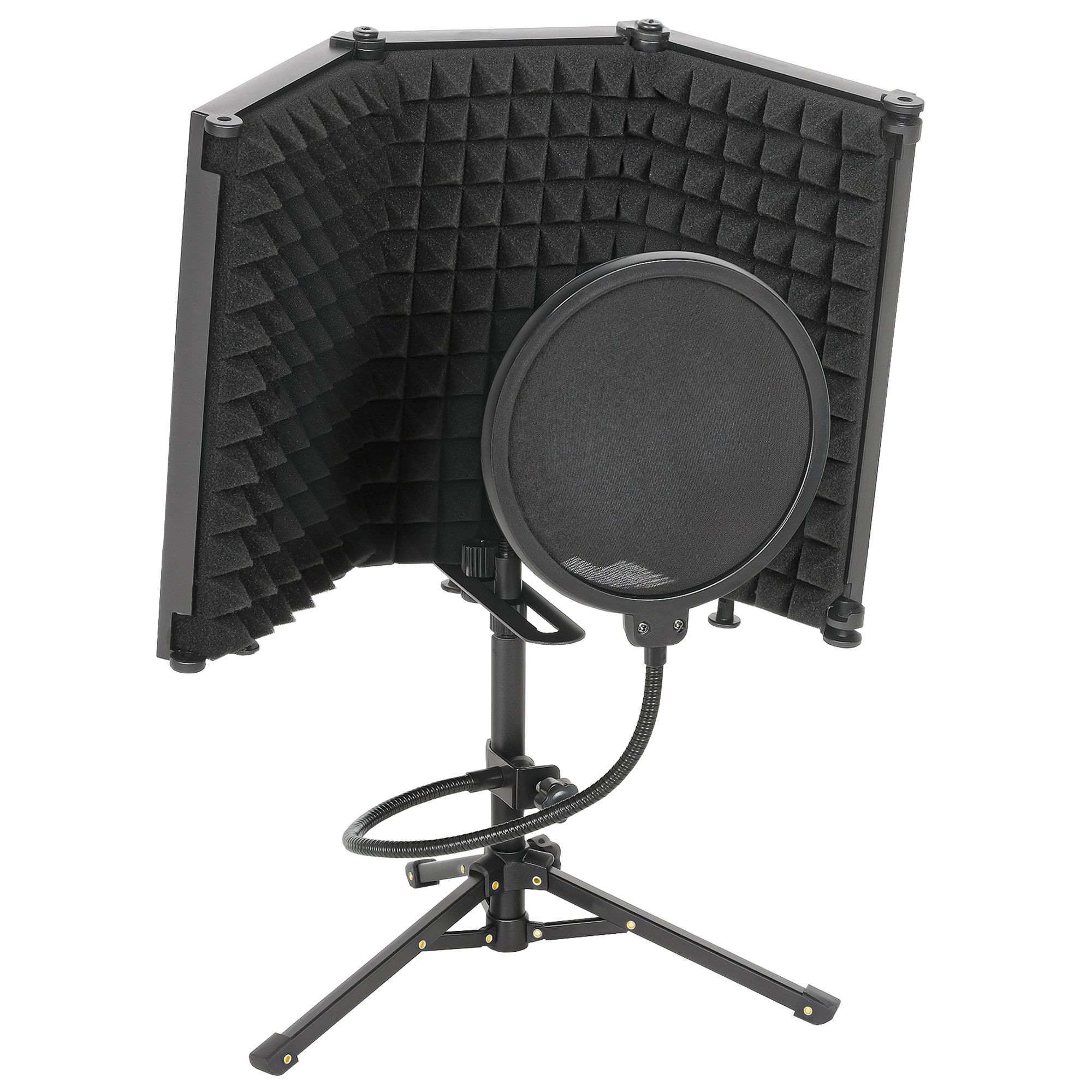FARRAVON Studio Microphone Isolation Shield with Pop Filter and Tripod Stand - Black