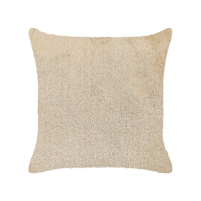 Enhance the decor of your living space with this stylish cushion. Made out of polyester, it is very durable and pleasant to touch, especially because of its shaggy-like texture. Thanks to its classic beige colour, it can be matched with a variety of interior decors. Details: Color: Beige. Main material: Faux Fur. Material Composition: 100% Polyester Assembly: Does Not Require Assembly