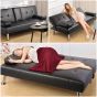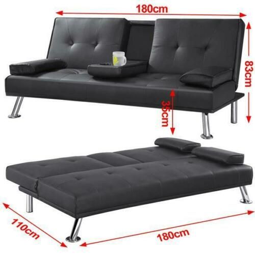This foldable sofa bed is made of high-quality faux leather. This multi-fuctional sofa bed offers great durability as well as looking great. The sofa bed can comfortably sleep one adult. It includes 2 removable pads as shown in picture, arm cushions for extra support and for use as pillows when in bed mode. Also, the cushions can be taken off easily and to be used as pillows. Drop down drinks table makes for easy relaxation in front of the TV! You can enjoy a nice refreshing drink and a few snacks while watching your favourite show