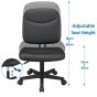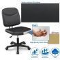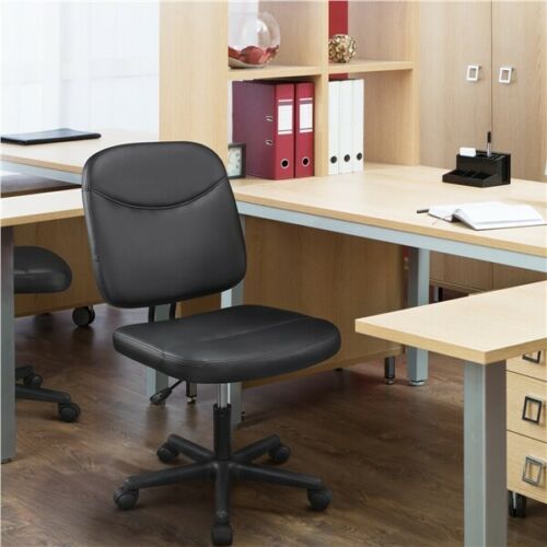This armless chair can be more than what you expected from a desk chair. Practical armless design has more flexibility to be compatible with your particular desk, so that you do not have to worry about extra measurements; Premium faux leather cover is both water-resistant and long-wearing; High density foam is soft but firm at the same time, featuring deformation-resistant; Durable nylon castors make this armless desk chair noise-free and scratches-prevented; A 360° smooth mobility let you move easily from task to task; Classic and traditional appearance makes this armless office chair fit in various places such as office rooms, conference rooms and meeting areas.