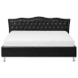 This bed injects modern glamour into a classic design. The headboard is upholstered in an easy-to-care-for faux leather with silver button tufting and a nail-head trim. The robust frame provides support and stability, ensuring a peaceful night’s sleep. Make a statement in your bedroom with this glam rock accent piece. Details: Color: Black, Silver. Main material: Faux Leather. Additional material: Metal, Poplar Wood. Material Composition: 100% PVC Leather Weight: 59 Assembly: Full Assembly Required Wood type: Populus Wood Origin: China Weight Capacity: 220 Legs Height: 13 Sleeping Surface: 180x200