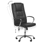 This sleek office armchair makes a huge difference for your work comfort. It is equipped with all the functions you’d look for in a premium quality chair, including a massage and a heating option. Featuring a padded seat and armrests, all tailored in faux leather, it is designed to keep you comfortable throughout the day. With the adjustable seat height and tilting function, it is easy to customise it to one’s needs. The enclosed remote allows you to choose the massage mode, switch on the heating function or set the timer. Details: Color: Black, Silver. Main material: Faux Leather. Additional material: Steel. Material Composition: 100% PU Leather Weight: 19 Assembly: Full Assembly Required Weight Capacity: 120 Seat Height: 47-55