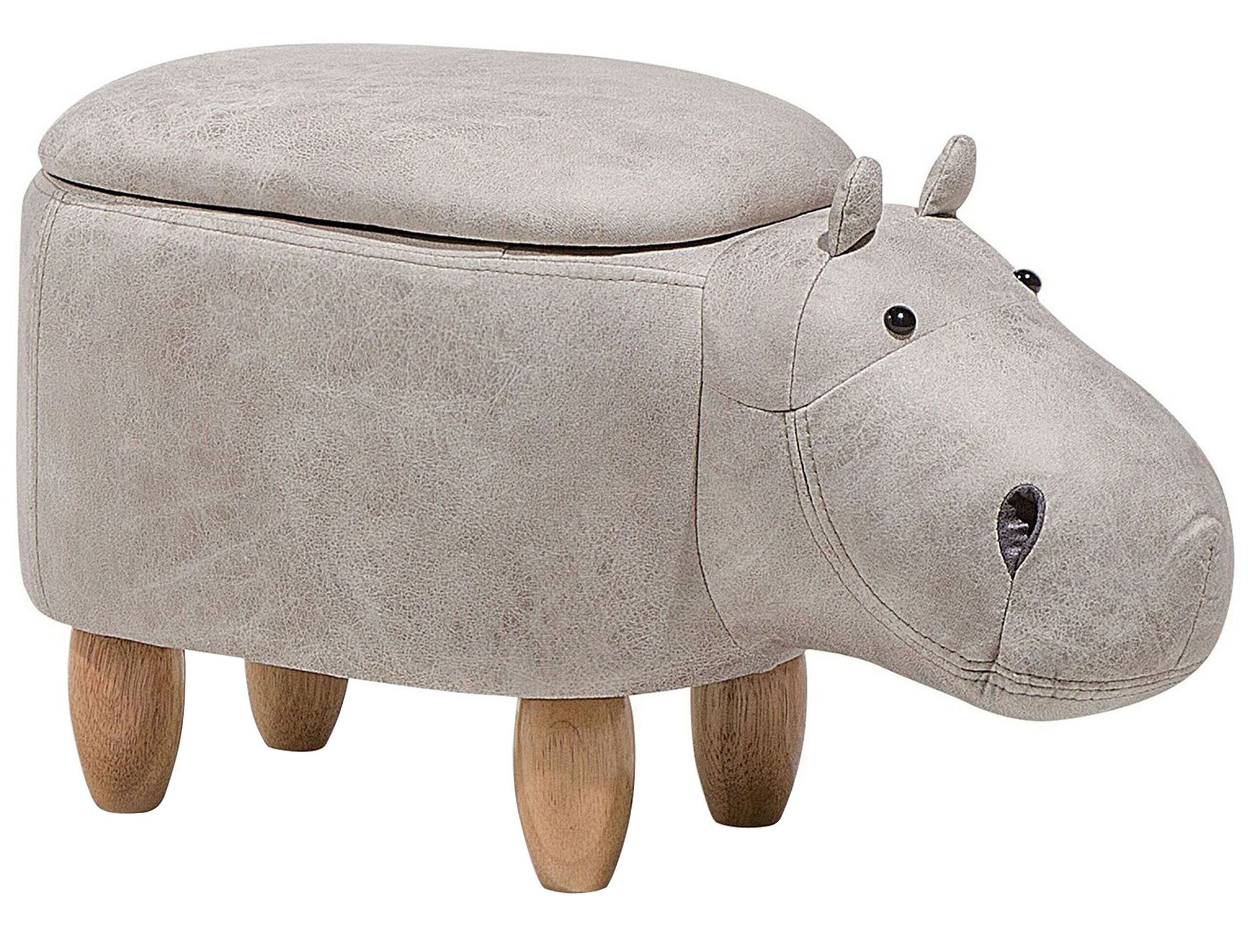 Faux Leather Storage Animal Stool Light Grey HIPPO