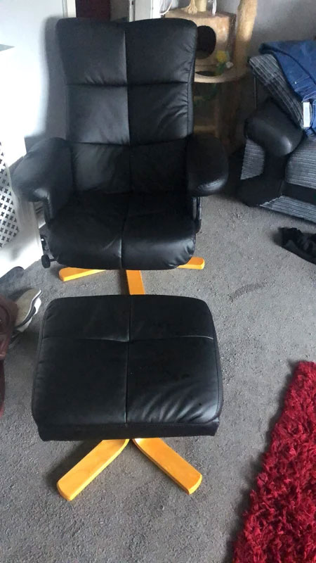 - Recliner chair with footstool: A duo package - a place to relax and unwind. Recliner armchair back tilts back to a maximum 145° angle.