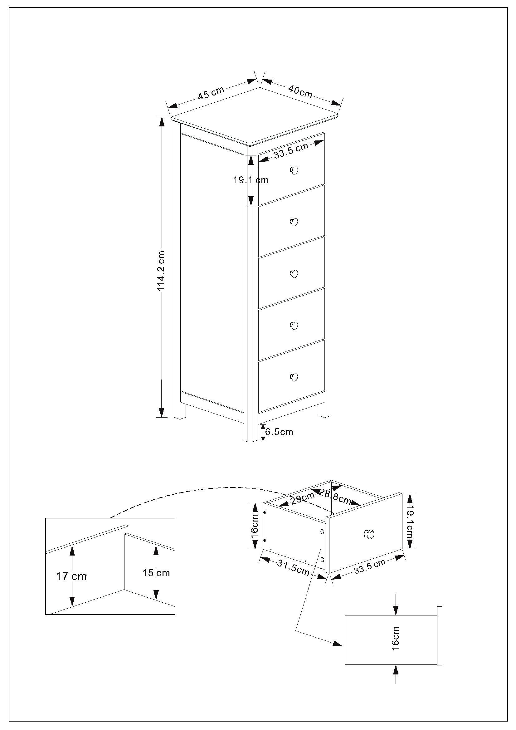 FAYRA White Chest of Drawers - Tallboy, Medium-sized, 5 Drawers