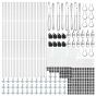 Item Includes: 44 x Post, 8 x Angle post, 44 x Base plate, 44 x Plastic cap, 132 x Plastic tension wire supporter, 8 x Angle post cap, 8 x Angle post hardware, 12 x Tensioner, 4 x 25 m Binding wire, 4 x 80 m Tension wire