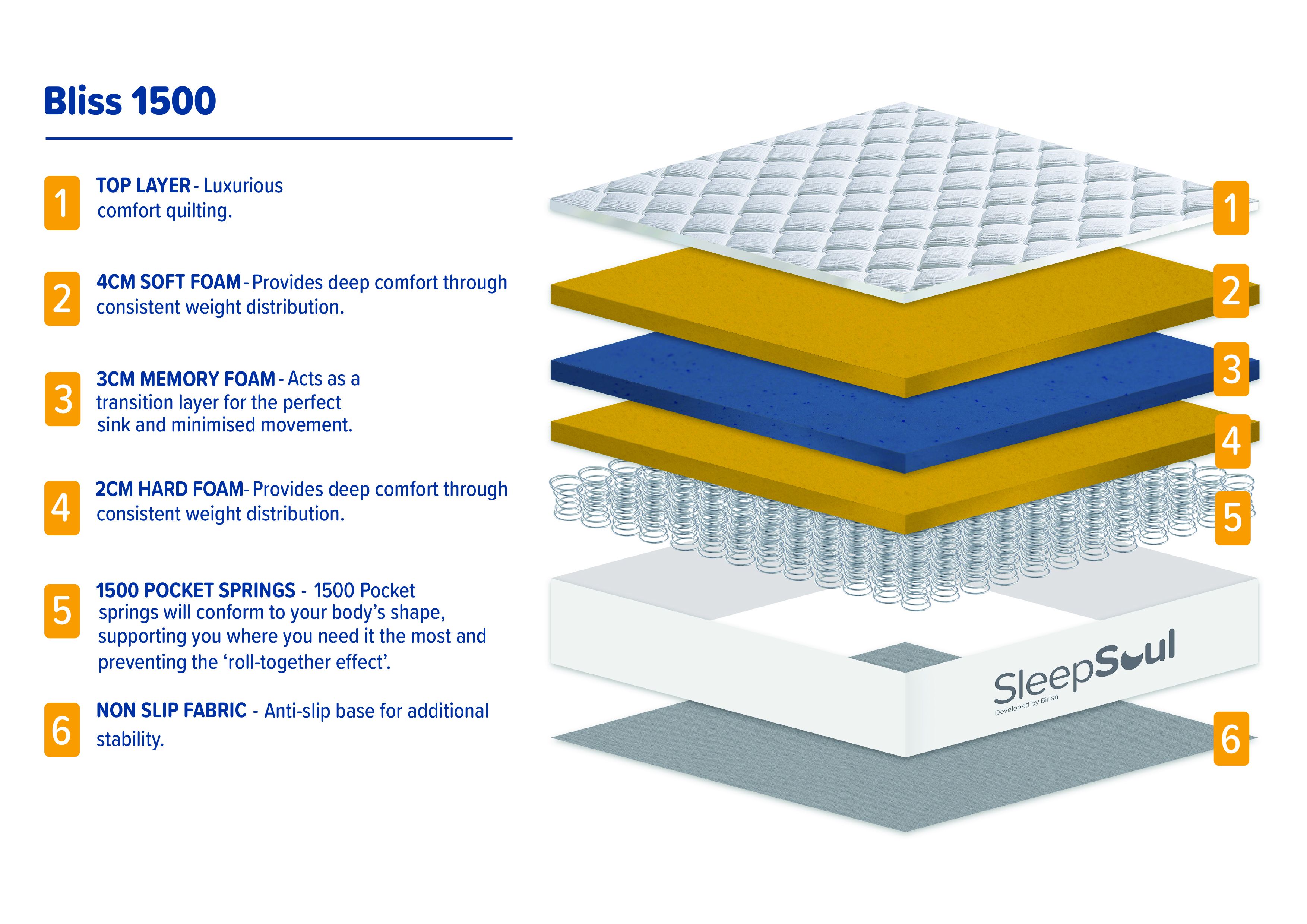 FENIXOR Single Pocket Sprung Mattress 1500 Springs - White with Blue