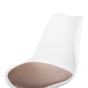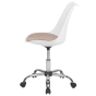 This functional desk chair will refresh your workspace with its clean design. The ergonomically curved seat is made of hard wearing synthetic material and equipped with a seat pad covered in gold faux leather. Its robust leg is made of chromed metal and complements the style and ensures total stability. The chair is swivel and features floor protection caps which prevent the floor from scratches. Thanks to the gas lift, the height can be adjusted. The chair will be a perfect accent for Scandinavian, retro as well as modern interiors.