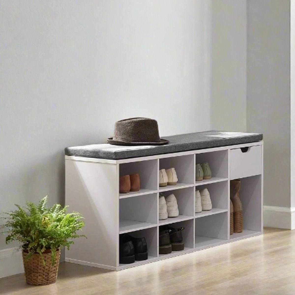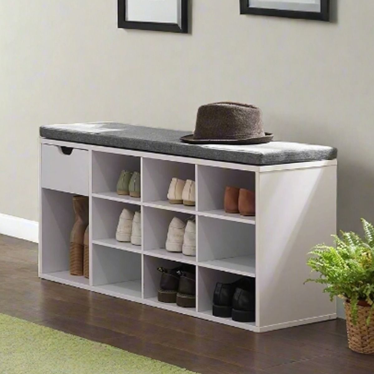 FENVIRA Shoe Storage Bench with Padded Seat and Drawer - Rustic Brown