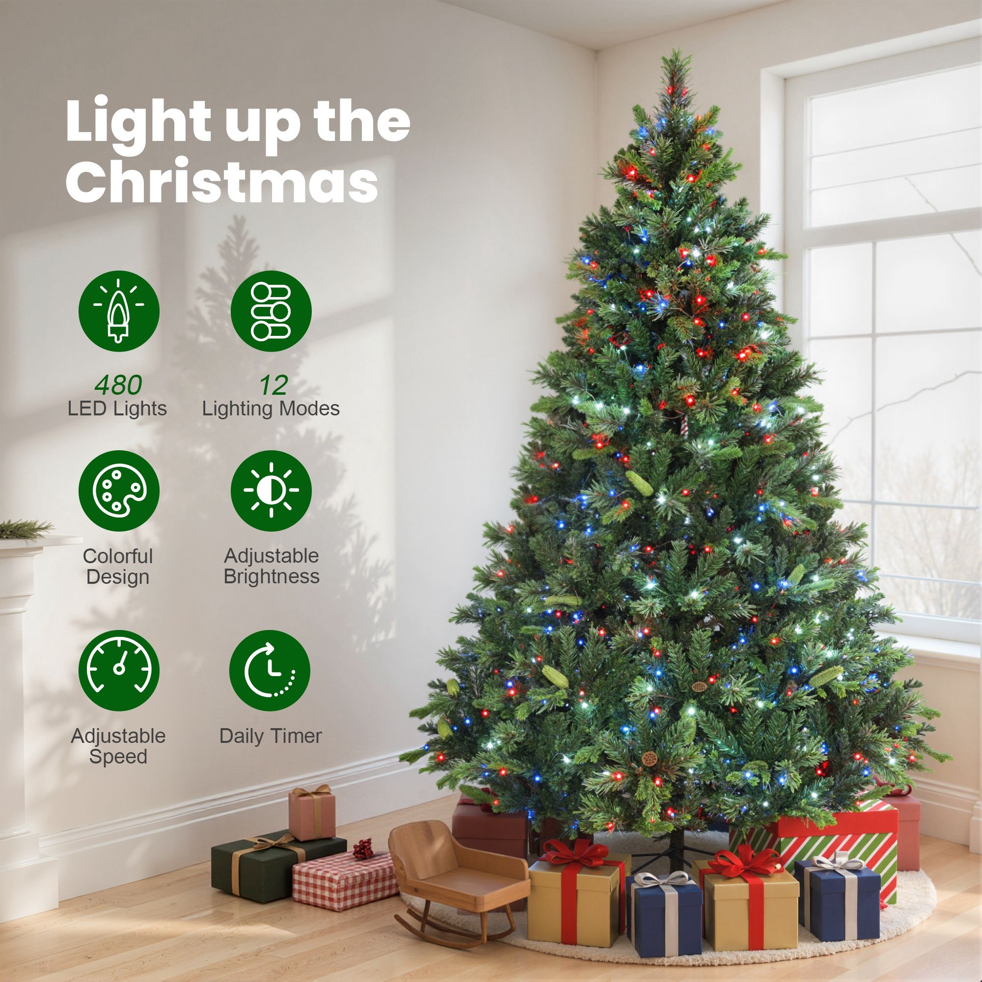 FENWAY Carolina Pine Christmas Tree Plastic Prelit Artificial Tree 7.5ft - Green