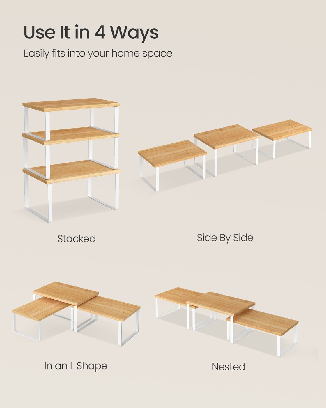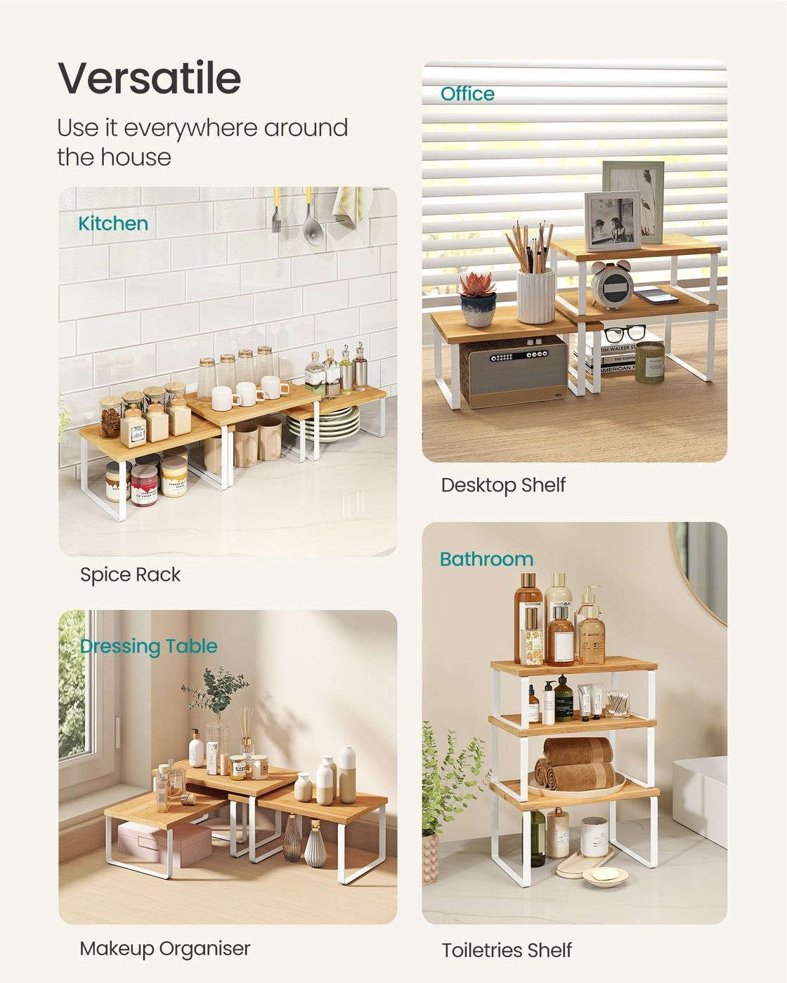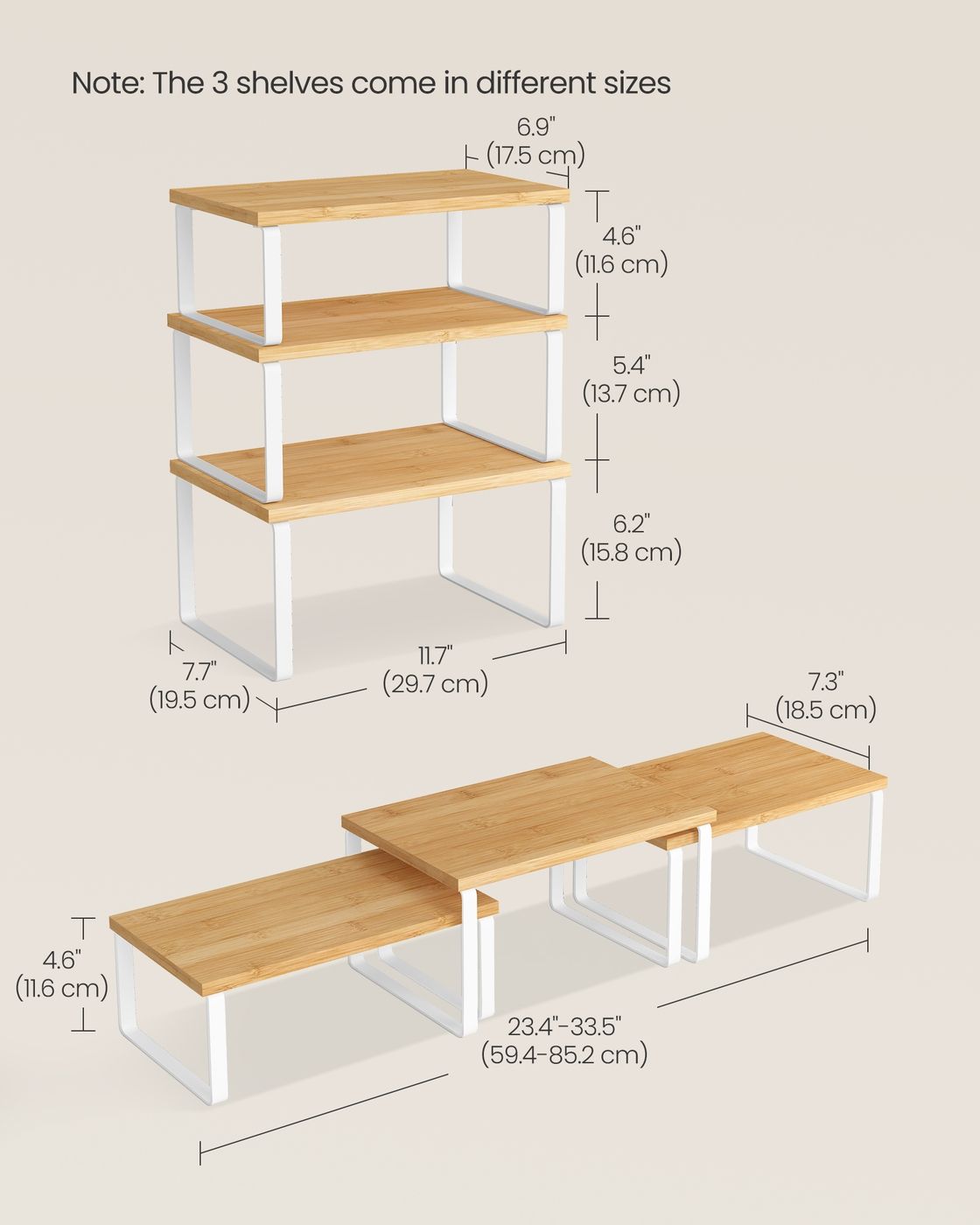 FENWELL Kitchen Cabinet Organiser Set of 3 - Brown and White