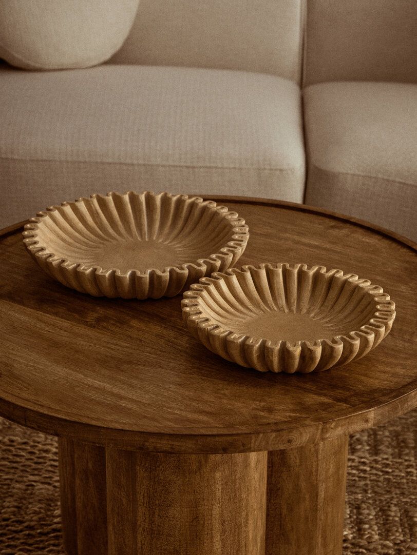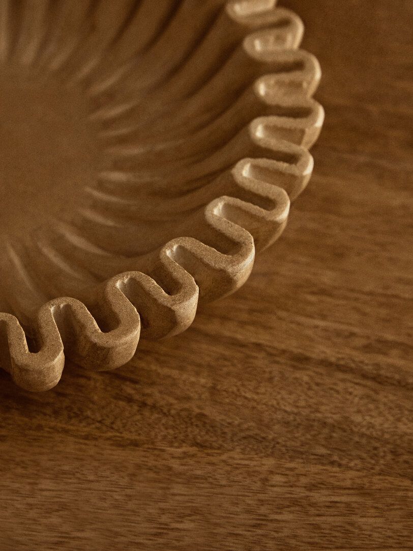 The FENWRETH small bowl boasts handcrafted charm with its intricate yet durable ochre marble body with organic veining and chic fluted design.