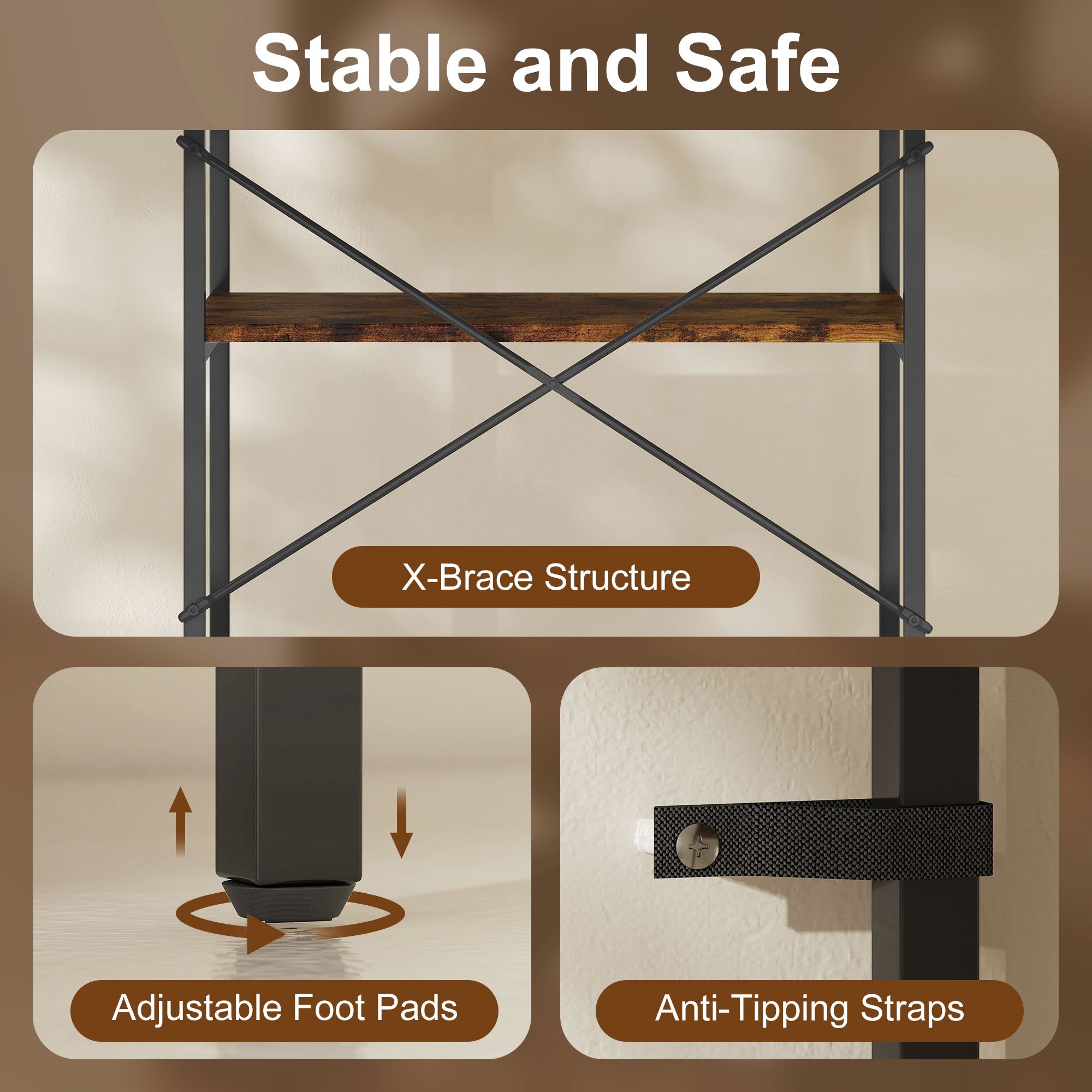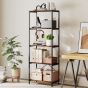 FEREDON 5-Tier Bookshelf, Industrial Bookcase with Metal Frame - Rustic Brown and Black