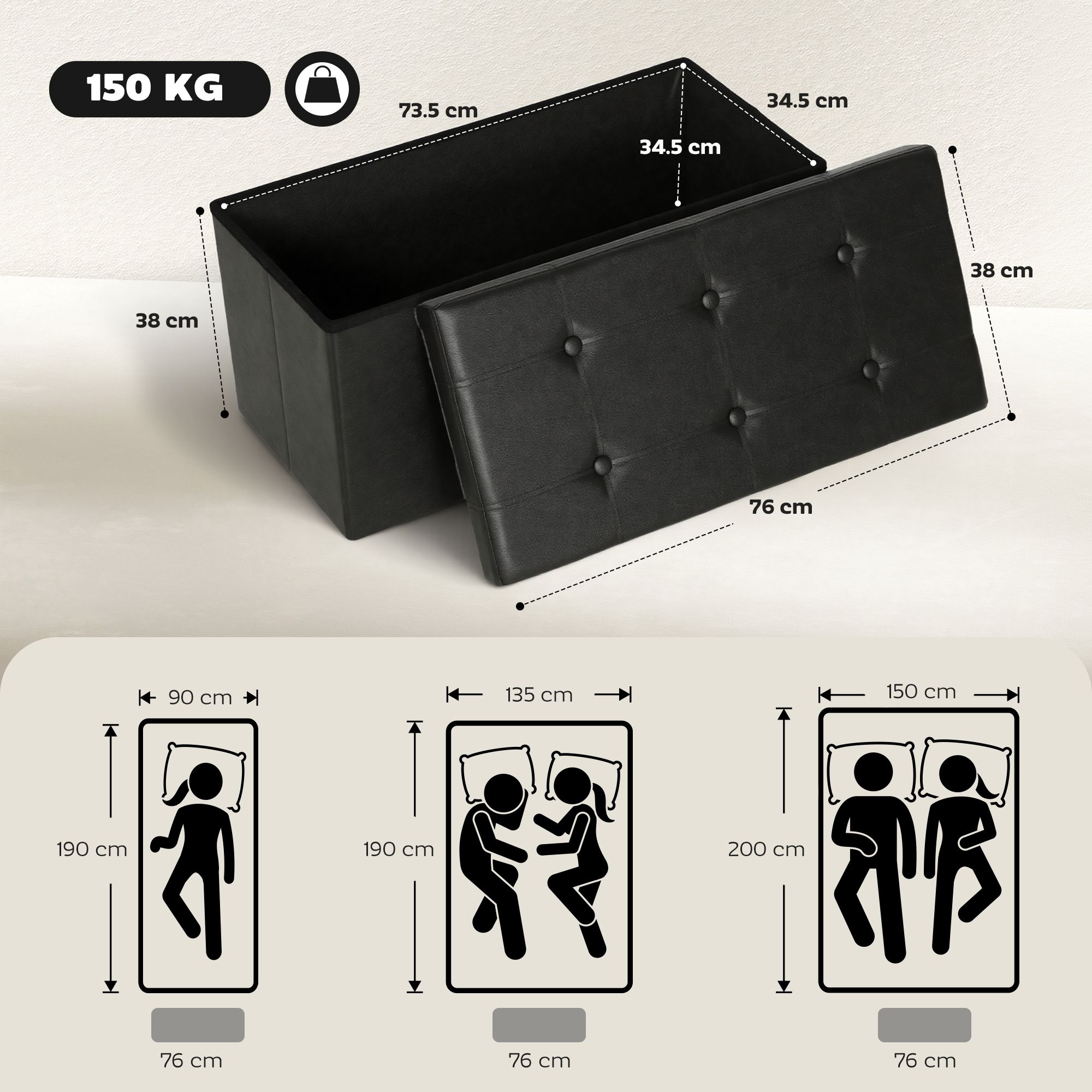 Struggling with clutter in a compact living space? The constant battle with scattered blankets and belongings can make your home feel chaotic rather than relaxing. This HOMCOM ottoman storage box offers a dual solution. It provides a generous 89L of space to create a tidy retreat. When not in use, it folds away in seconds. The elegant PU leather and thick cushion add a touch of refined comfort to your room. Foldable design: This ottoman storage box folds down in seconds, making it simple to tuck away when not in use, great for keeping smaller flats tidy and uncluttered Large capacity: Enjoy a spacious 89L of storage in this ottoman, great for blankets, books, or other essentials keeping your home tidy and welcoming for relaxing moments Stylish comfort: The easy-to-clean PU leather covers soft foam padding for lasting comfort. Classic button tufting adds an elegant touch, making this ottoman both inviting and stylish Utility focused: Use this ottoman storage box as a footstool, coffee table, or extra seat suitable for welcoming guests or enjoying quiet moments
