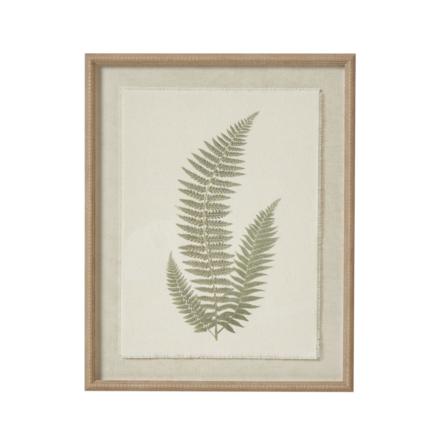 Bring the timeless beauty of botanical art into your collection with this exquisitely detailed fern study. Set against textured torn paper, the delicate sage-green fronds create a sophisticated focal point that resonates with both traditional and contemporary interiors. The ornate beaded frame in warm champagne tones adds refined elegance, while the neutral palette ensures versatile styling potential. Perfect for creating curated gallery walls alongside vintage mirrors and abstract pieces, or as a standalone statement in minimalist spaces. This piece pairs beautifully with natural materials like rattan, linen, and weathered wood, making it ideal for boutique hotels, coastal homes, and sophisticated retail environments. The artistic composition speaks to the enduring appeal of botanical prints while offering a fresh, modern interpretation. Your customers will appreciate how this versatile piece complements Scandinavian, modern farmhouse, and classic interior styles.
