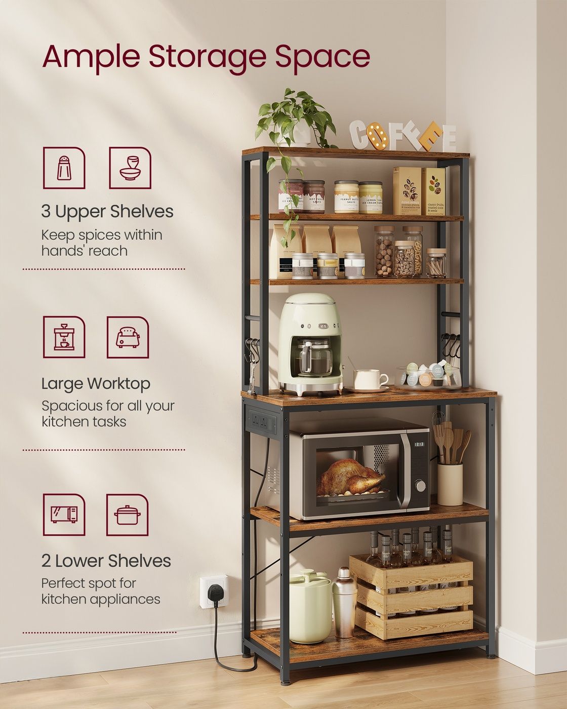 FERNHAVEN Kitchen Utensil Racks with Power Outlet - Brown and Black