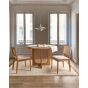 These elegant dining chairs combine timeless craftsmanship with natural materials for a refined look. The solid rubber wood frame ensures strength and durability, while the upholstered seat provides comfort for everyday dining. Their defining feature is the beautifully woven Viennese braid backrest, which adds texture, lightness, and a touch of classic sophistication to the design. Blending tradition with modern simplicity, these chairs make a versatile addition to both contemporary and vintage inspired interiors.