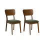 FIELDEN Wooden Dining Chairs - Set of 2 - Green with Dark Brown