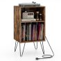 File Cabinet - 3-Tier Record Player Stand with Charging Station Shelf and 4 Dividers-Rustic Brown
