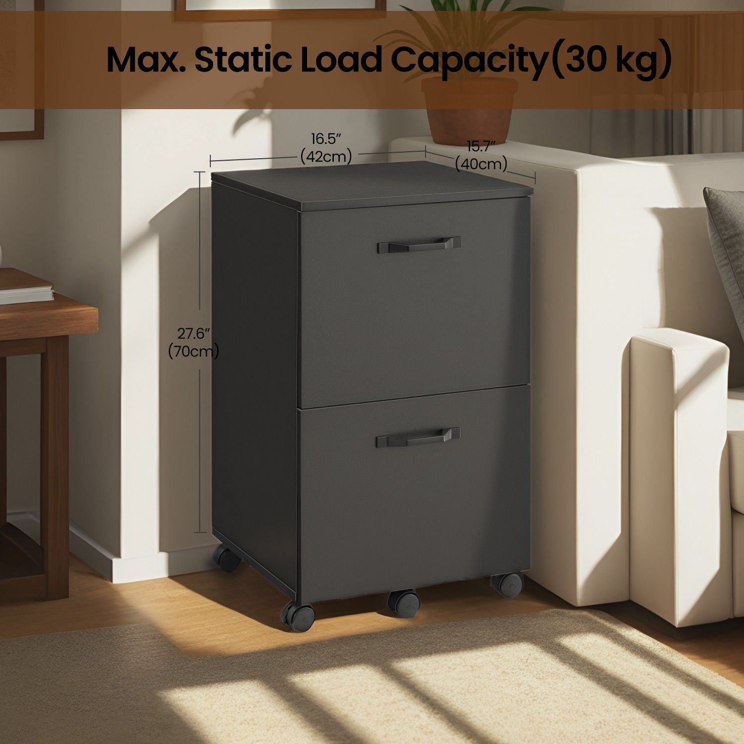 File Cabinet - LUSNA 2 Drawer Rolling Printer Stand with Hanging Rail - Ebony Black