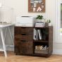 File Cabinet - Mobile File Cabinet with 3 Pull-out Drawers and Adjustable Shelf-Rustic Brown