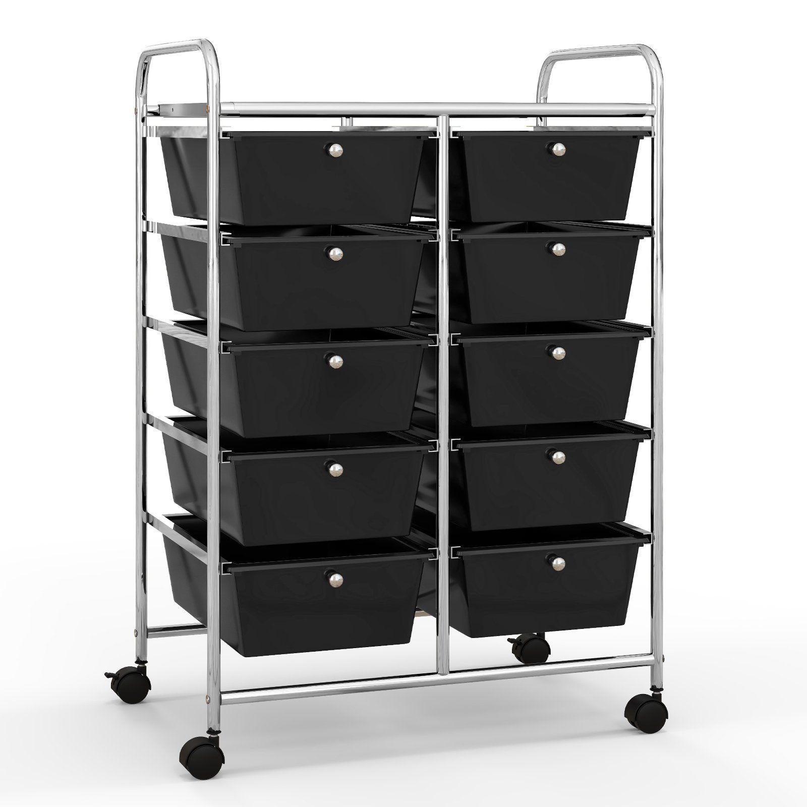 File Cabinet - Storage Rolling Cart with 10-Drawer for Tools Scrapbook Paper Organising-Black
