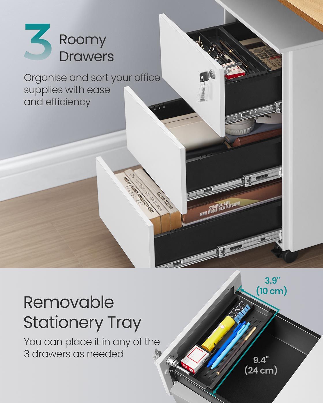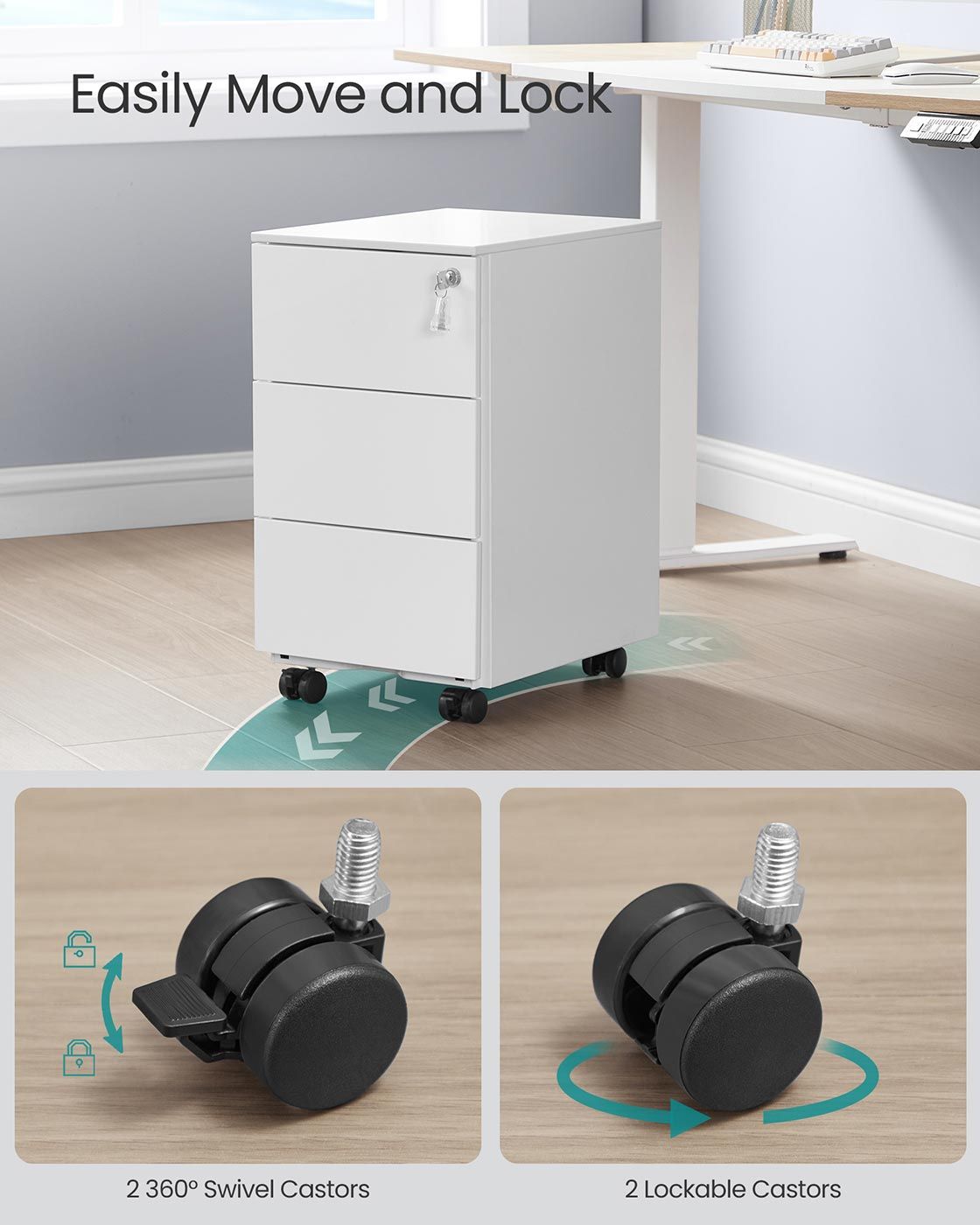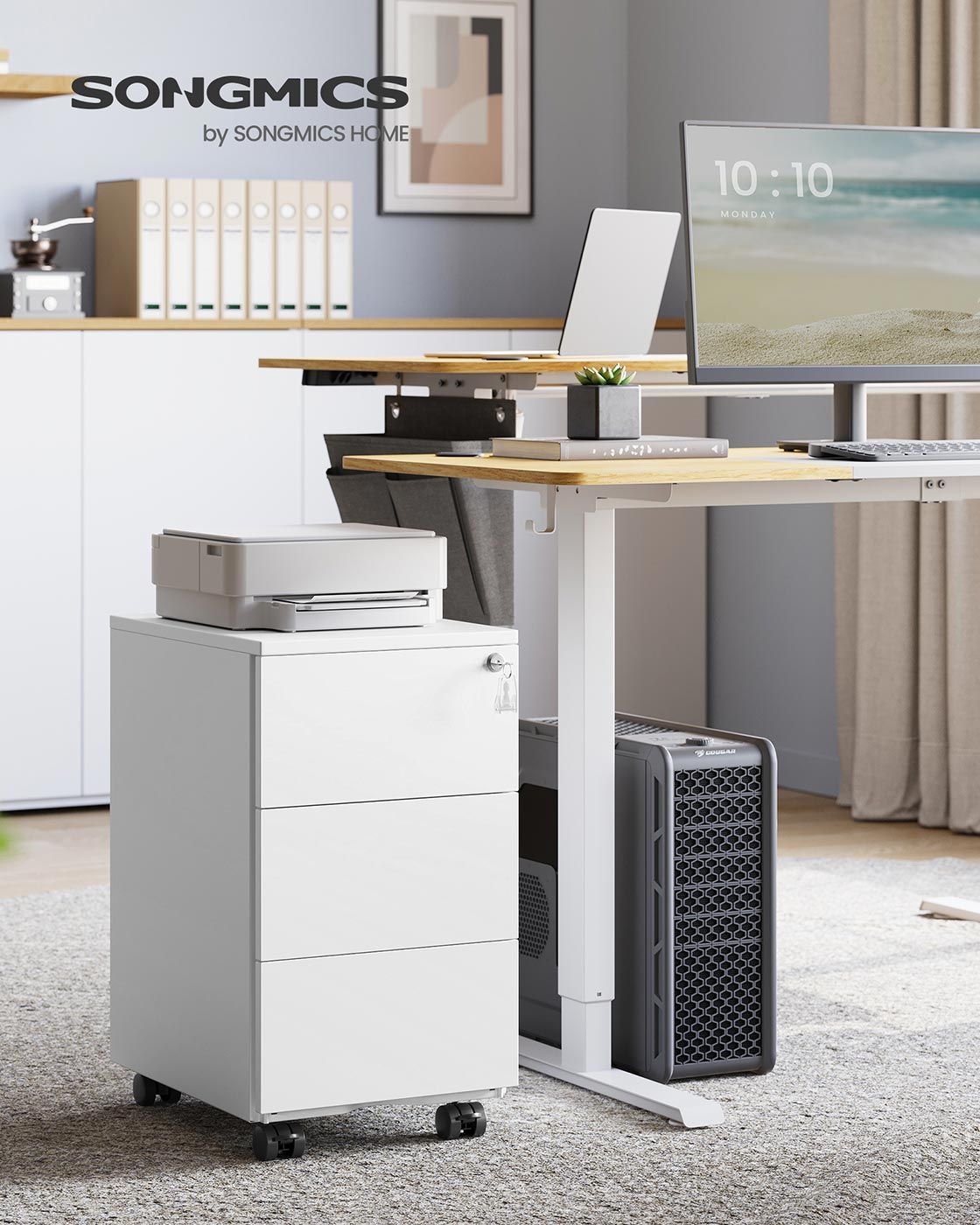 File Cabinet - ZARTA Mobile 3 Lockable Drawers Pre-Assembled - Matte White