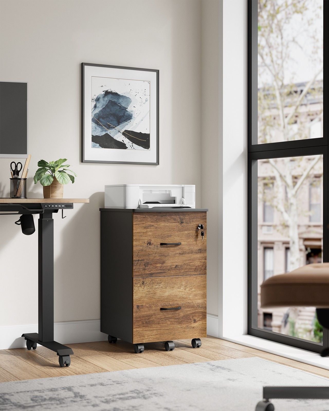 This locking filing cabinet is perfect for your home office, offering secure storage for important documents. Its sturdy construction and key lock ensure your files remain private and protected. With ample drawer space, it's ideal for organizing and decluttering your workspace, keeping everything you need easily accessible yet safely out of sight.