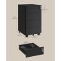 Organize your workspace with this lockable 4-drawer mobile file cabinet in sleek Ink Black. Crafted for durability, it efficiently stores documents and stationery. Its pre-assembled design and smooth-rolling casters offer ultimate convenience for your home or office. Keep your essentials secure and accessible.