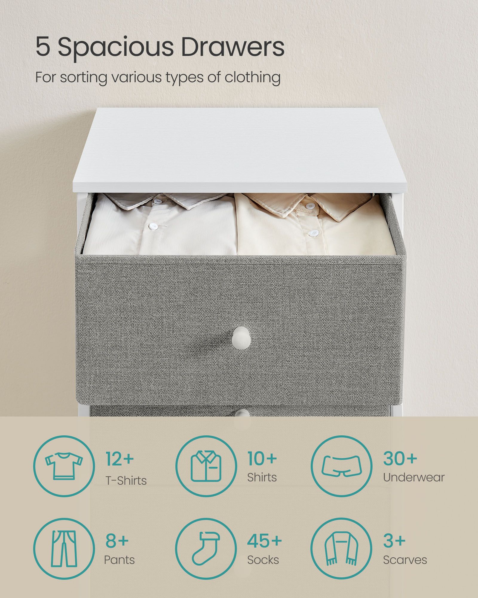 FINRAE Dove Grey Chest of Drawer - Medium-sized, 5 Drawers