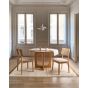 Bring a touch of retro charm to your dining space with this elegant chair. The sturdy rubberwood frame is complemented by a backrest with classic cane webbing, adding both style and lightness to the design. The generously padded seat is upholstered in soft boucle fabric, offering comfort with a tactile, modern twist. Perfect for elegant dining rooms or classy kitchens.