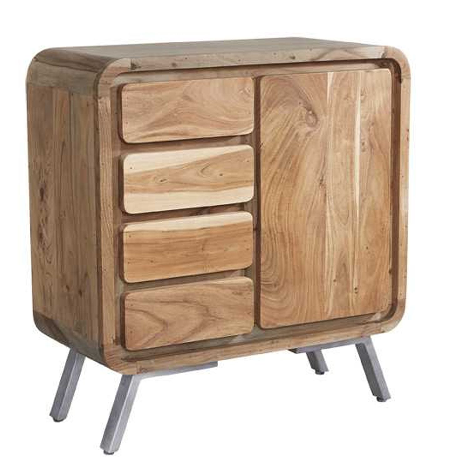 Fiona Metal Legs Unique Retro Style Wooden Medium Sideboard With Door and Drawers