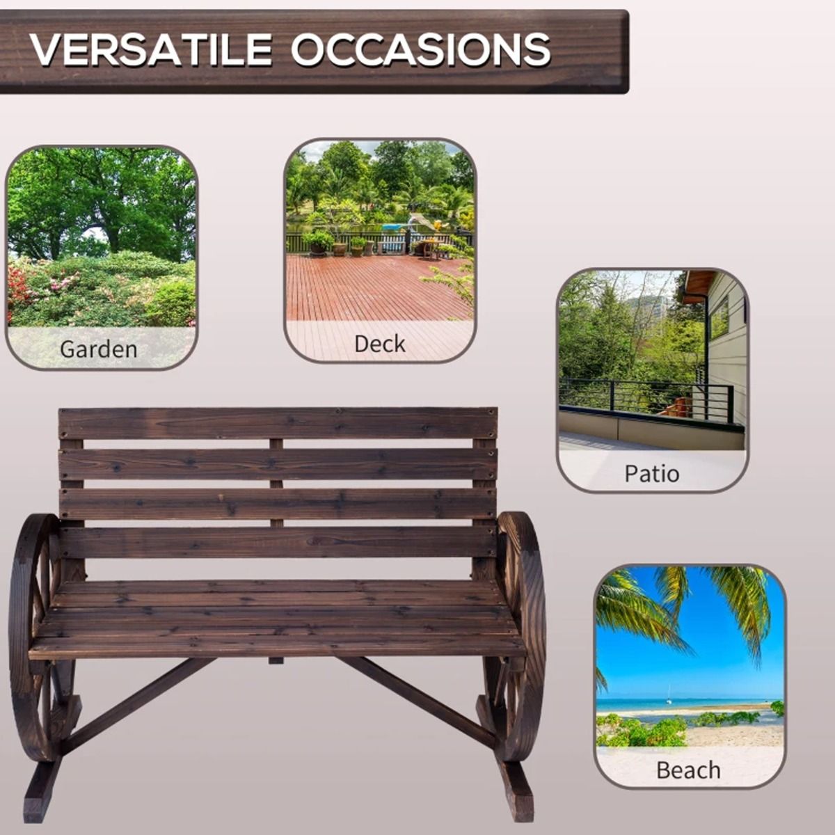 - Well-designed wheel-shaped armrests and carbonized color bring your outdoor area a unique look